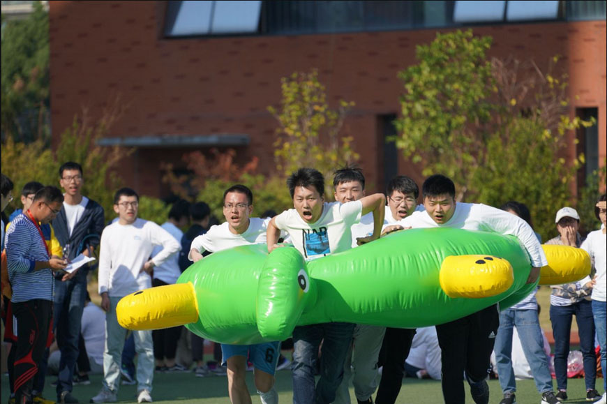 花樣接力,每一次擊掌的瞬間,給隊友的都是一種無形的力量;龜兔賽跑,在“1、2,1、2”的節(jié)拍中,人人爭做可愛的小兔子,蹦蹦跳跳向前沖。一根粗粗的麻繩,一頭牽著集體,一端系著榮譽(yù),激勵我們永不放棄。