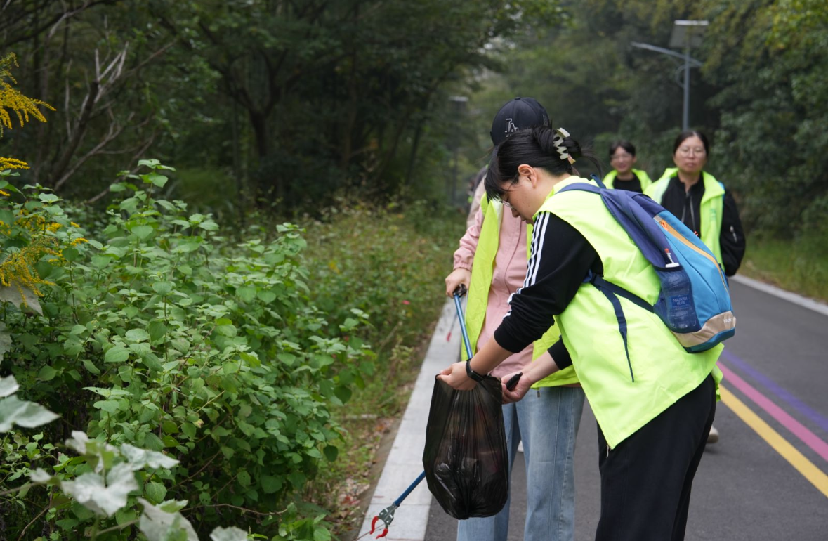 本次活動將體育鍛煉與環保公益相結合,讓每一步都踏得格外有意義。沿途,大家手持垃圾夾和環保袋,細心撿拾步道及草叢中的塑料瓶、包裝袋、煙頭等丟棄物,踐行“無痕山林”的環保理念,所過之處更顯潔凈。熒光綠的小馬甲,成了秋日山野間一道亮麗的風景線,展現出萌恒人良好的精神風貌與社會擔當。